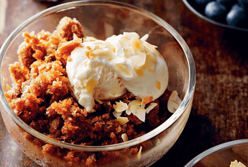 Kaffegranita med mandler og solbær